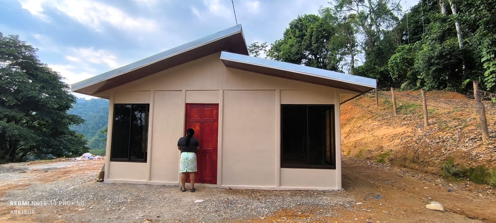 El Modelo Arkisur Familiar 50 cuenta con tres habitaciones, un baño y áreas sociales integradas, ofreciendo una solución sólida, funcional y económica. Su sistema prefabricado garantiza rapidez de construcción y alta durabilidad, con posibilidad de personalización según el terreno y el gusto del cliente.